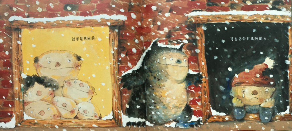 This is a super delightful story of the monster “Nian” with a slight twist. The story accords “Nian” to be a little monster once created from the cumulative loneliness in the winter air and lived in the mountain top. In the coldest of the winter, he would feel extremely lonely and angry and thus descend to terrify those who are or soon-to- be- lonely soul. Therefore, people came up with many practices to drive him away. He retreated for a long while. But then he reappeared again to target on those lonely. “Nian” would then ‘capture’ the lonely, ‘sneak’ into their heart causing them to be more miserable and angrier than ever and eventually swallowing them. At this juncture, the story broke free from the imminence, and brought a simple new perspective to the familiar Chinese customs during Chinese New Year.Xiong Liang’s illustration emphasizes on linework and the feel of the ink. The structure and language in this book are modern, concise and pure, yet having a unique sense of humour and poetic feel. The story can be easily understood by children and even readers of different culture, brilliant expressions of emotions.Want to know what happened to “Nian” and all the lonely souls?