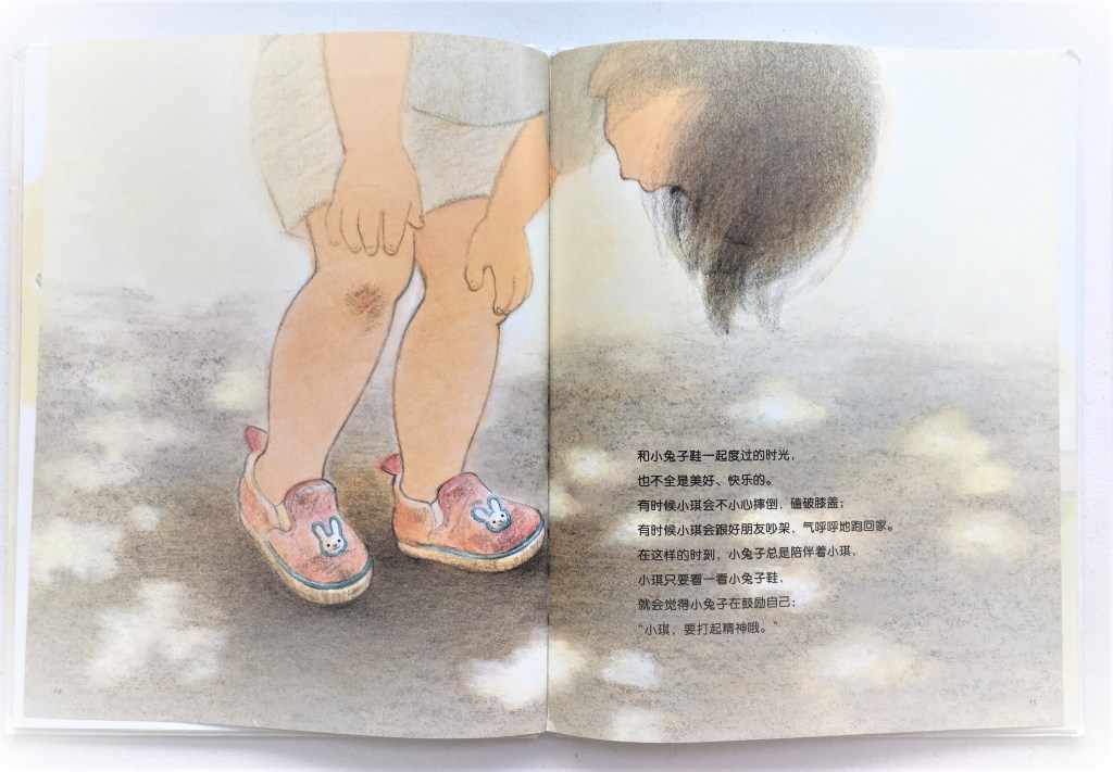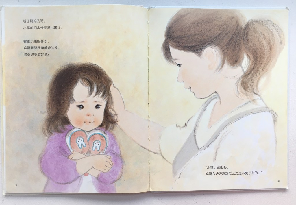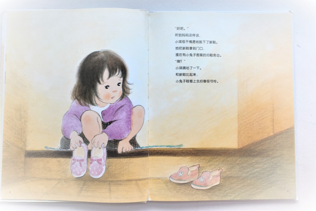 这本书的故事简单温馨,就是关于一个小女孩不舍得丢弃一双穿了很久又很旧的鞋。当她正在门口,把妈妈买给她的新鞋放好时,她看着她的旧鞋,脑子浮现了穿着新鞋和它一起度过的时光。想着,泪满眼眶,她跑到妈妈身边,问看妈妈会怎么处理旧鞋。妈妈看着她一副不舍得的样子,答应帮她找个能保留旧鞋的方法。